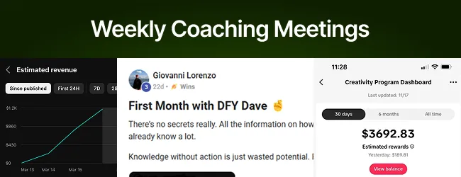 Live Weekly Coaching Meetings along with Dedicated Weekly Execution Calls! You will also gain access to our Vault, which includes all previous coaching meetings and sessions!